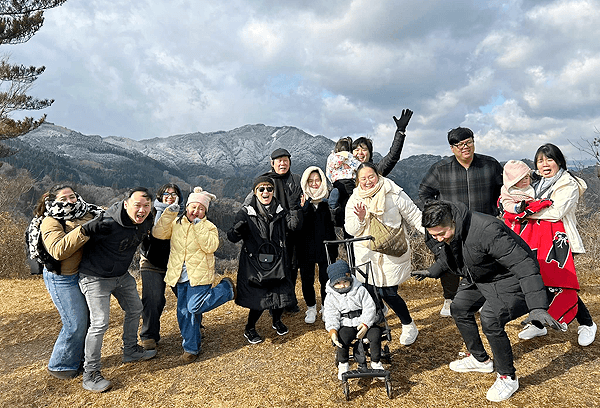 阿蘇山は世界有数の大型カルデラを持つ活火山です。15人のグループがエンジョイしました。